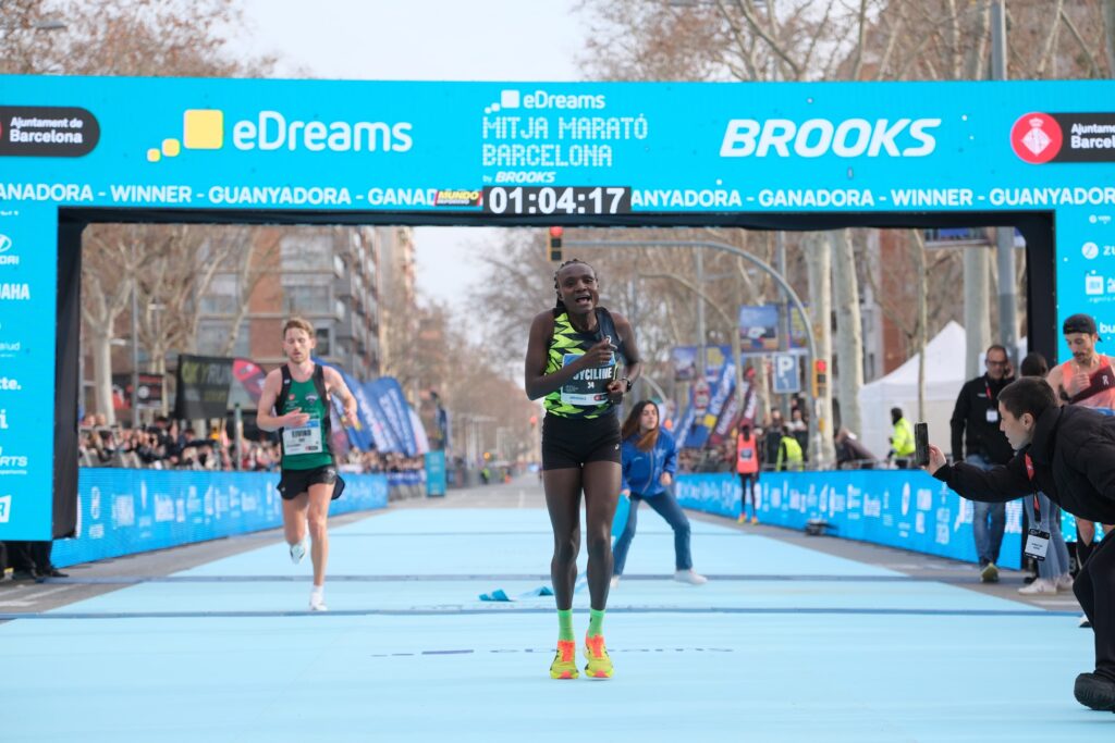 Once again, without opposition, the Kenyan Joyciline Jepkosgei reigned in Barcelona. She led the eDreams Mitja Marató Barcelona by Brooks 2025 uncontested, becoming the fastest woman in the race for the second consecutive year, setting a new circuit record, improving her previous record from last year by 27 seconds (01:04:11). Her compatriot Gladys Chepkurui maintained second place throughout the race, finishing in 01:06:25. The third place in the women’s category went to Ethiopian Alemtsehay Bimr Zerihun (01:08:19).