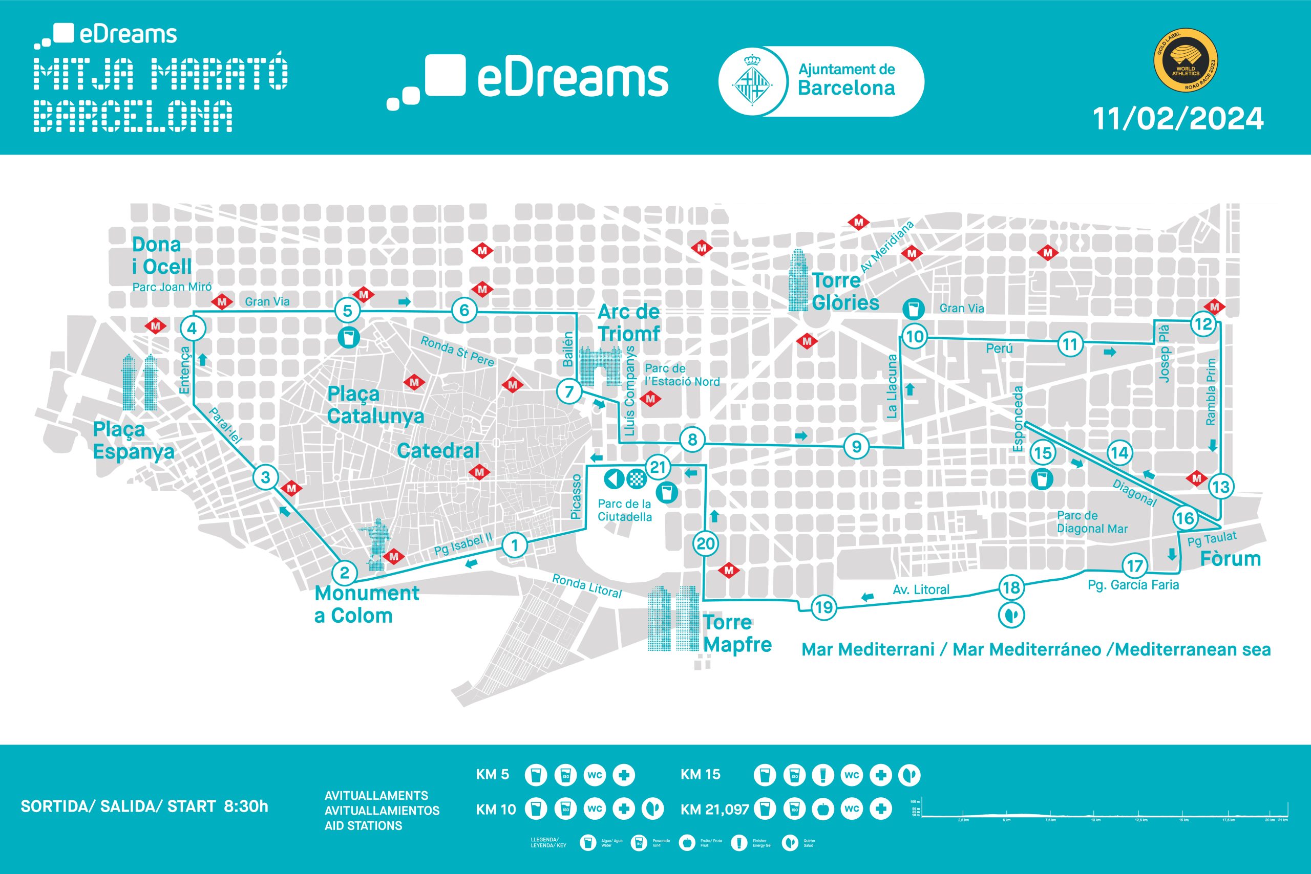 Selon les coureurs, le parcours de l'eDreams Mitja Marató Barcelona by Brooks est l'un des plus complets sur la scène internationale et a été conçu dans le but de favoriser la vitesse.