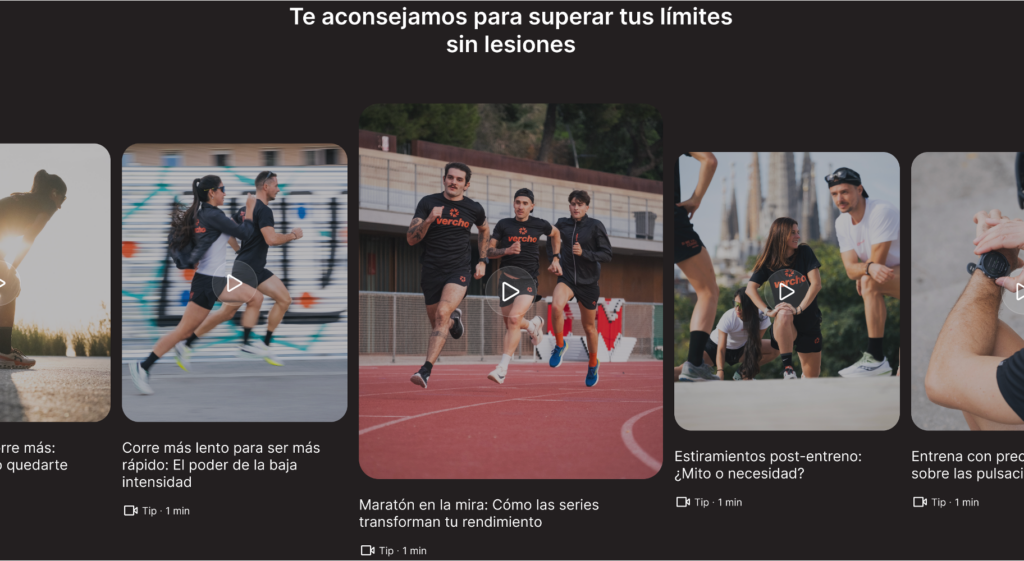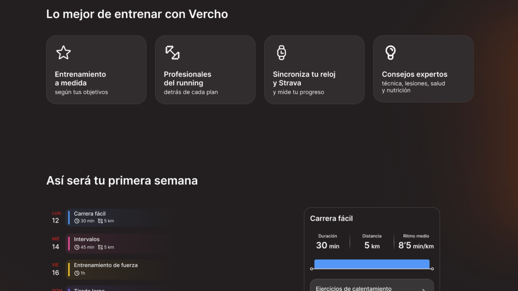 L’arribada de Vercho porta el running al següent nivell. Aquest entrenador virtual dona resposta a les necessitats i inquietuds de corredors de tots els nivells amb plans d’entrenament 100% personalitzats amb un seguiment setmanal avançat, entrenadors professionals a càrrec del disseny d’aquests plans i consells especialitzats en format audiovisual de tècnica, prevenció de lesions, salut i nutrició.